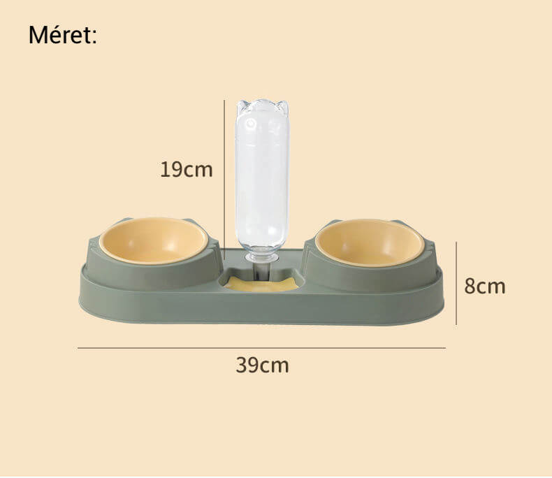 Minden, amire kedvencednek szüksége van a boldogsághoz — egy helyen! A 3 az 1-ben levehető kialakítású automata macska kutya etetőtál készlet két tálat, egy vizes palackot és egy talpat tartalmaz. Innovatív kialakítással az etetőtálunk csökkenti a nyak megterhelését, megelőzi a rendetlenséget és frissen tartja a vizet.